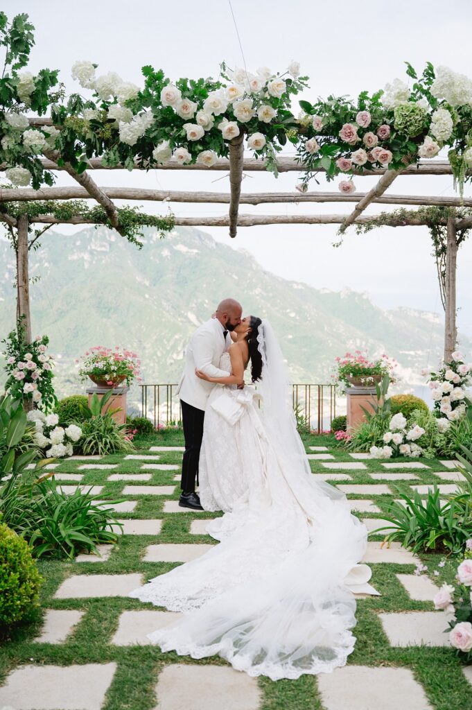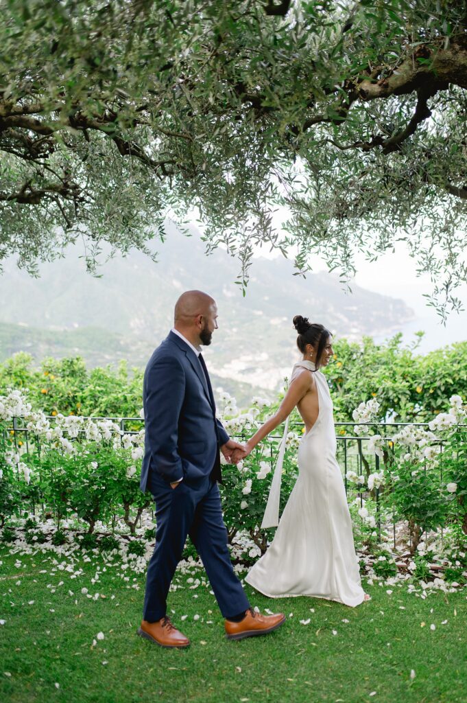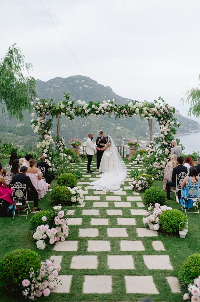 We kicked off Ericka and Gary’s three-day destination wedding weekend in Ravello with an intimate welcome dinner, followed by a stunning rehearsal dinner the next day under the olive trees. On the day of their ceremony, Ericka and Gary read their handwritten vows overlooking the Amalfi Coast, as twenty-five of their closest family and friends witnessed them officially become husband and wife. Ravello (a place that means so much to them) could not have been a more perfect location for their destination wedding!